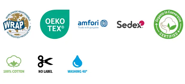 - Matière : 90% coton biologique, 10% viscose